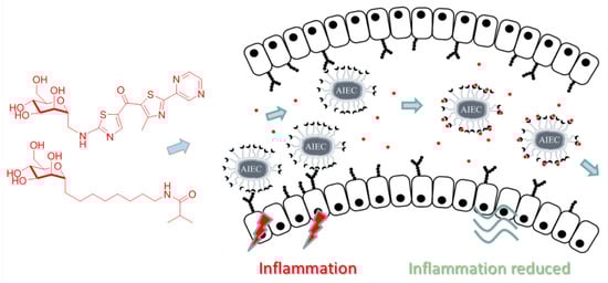 Illustration of the antiadhesive concept. Oral administration of Escherichia coli antiadhesives in Crohn′s disease mouse model was shown to lower the bacterial load in the gut and to reduce the inflammatory syndromes. AIEC: adherent-invasive E. coli.