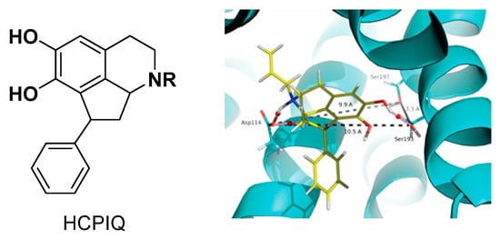 Natural products have been the most valuable inspiration for the synthesis of novel therapeutic agents. Among them, heterocyclic moieties are prevalent in pharmacologically relevant drugs (Cortes, D. Bioactive Secondary Metabolites: The Drugs that Nature provides. 2018. Cortes D. (Ed). ISBN-10: 171877768X; ISBN-13: 978–1718777682. CreateSpace). In the course of our research on synthesis of bioactive heterocycles, we synthetized novel isoquinolines as dopaminergic ligands, including tetrahydroisoquinolines carbamates (Parravicini, O., et al. J. Mol. Model. 2017, 23, 273), hexahydrocyclopenta-IQ (HCPIQ)(Figure 2) (Parraga, J., et al. Eur. J. Med. Chem. 2016, 122, 27–42), aporphines (Moreno, L., et al. Bioorg. Med. Chem. Lett. 2013, 23, 4824–4827), phenanthrenes (Moreno, L, et al. Bioorg. Med. Chem. Lett. 2013, 23, 4824–4827) and protoberberines (Párraga, J., et al. Eur. J. Med. Chem. 2013, 68, 150–166). Dopaminergic ligands can bind to subfamily D1-like (D1, D5) and D2-like (D2-D4) dopamine receptors (DR) to “restore” the dopaminergic pathway. From a therapeutic point of view, DR are the main target for antipsychotic (neuroleptics) and antiparkinsonian drugs. Recently, we demonstrated by binding experiments and functional assays that some of these compounds displayed affinity for DR with high selectivity for D2-like DR, behaving as dopaminergic agonists. Molecular modelling studies have established the main molecular interactions that stabilize the different ligand-receptor complexes (Parravicini, O., et al. J. Mol. Model. 2017, 23, 273; Parraga, J., et al. Eur. J. Med. Chem. 2016, 122, 27–42).