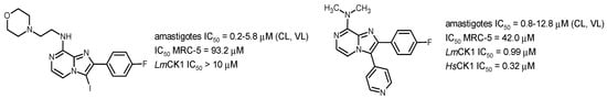 By synthesizing more than 200 derivatives, electrochemistry-guided pharmacomodulation studies progressively led to several potent and selective in vitro hit-compounds presenting IC50 values ranging 10 from 10 µM to nM against L. donovani (pro. & ama.), L. infantum (axe. ama.), T. b. brucei (trypo.) and T cruzi (epi.), low cytotoxicities on the human HepG2 cell line and high selectivity indices (from 10 to 400). We then demonstrated that, like for fexinidazole, these nitroaromatic molecules are selectively bioactivated by type 1 nitroreductases, probably leading to cytotoxic electrophilic reduction metabolites such as nitroso and hydroxylamine derivatives. In both series, hit-compounds were not genotoxic in the comet assay and even the mutagenicity Ames test was negative for several imidazopyridine derivatives. The determination of some preliminary in vitro pharmacokinetic parameters highlighted good microsomal stability (T1/2 > 40 min), high albumin binding (98%–99%) and blood–brain barrier diffusion (BBB PAMPA) in quinolinone series, whereas some metabolic issues needed additional work in imidazopyridine series to reach optimized hit-molecules that are now able to undergo in vivo evaluations on mouse models (Pedron, J., et al. Eur. J. Med. Chem. 2018, 155, 135–152; Pedron, J., et al. ChemMedChem 2018, 13, 2217–2228; Fersing, C., et al. Eur. J. Med. Chem. 2018, 157, 115–126; Fersing, C., et al. ACS Med. Chem. Lett. 2019, 10, 34–39).