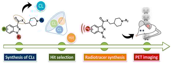 Essential steps to obtain radiotracers. CL: cold ligands, PET: positron emission tomography.