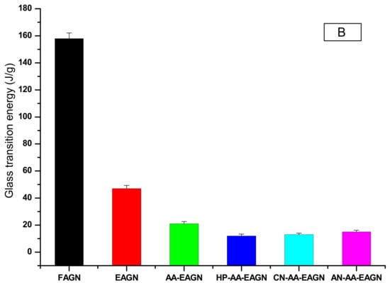 Glass transition temperature (A) and glass transition energy (B) of the AGNC formulation.
