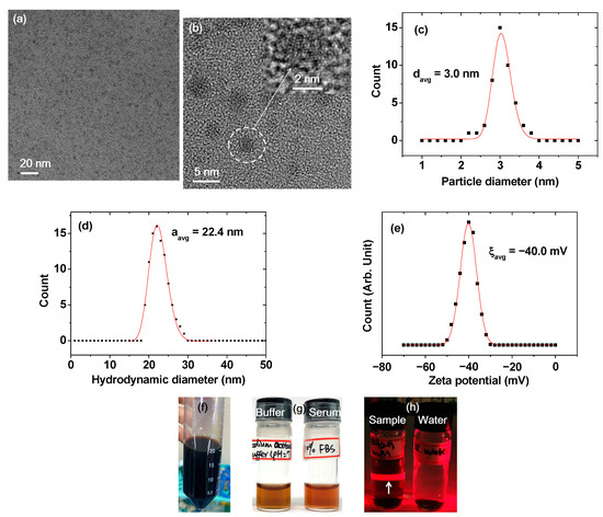- Pons, T.; Uyeda, H.T.; Medintz, A.I.L.; Mattoussi, H. Hydrodynamic dimensions, electrophoretic mobility, and stability of hydrophilic quantum dots. J. Phys. Chem. B 2006, 110, 20308–20316. [Google Scholar] [CrossRef] [PubMed]