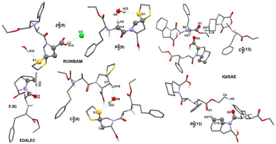 - S…H/H…S: in proline analog (NELSEC), perindoprilat DMSO solvate (BECWIR) and YOZTIS, RUWBAM, TUHMUE;