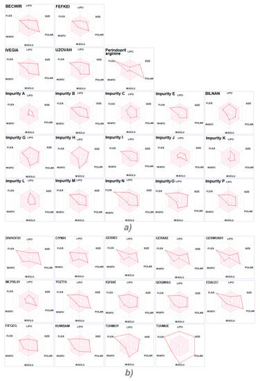 - Remko, M. Acidity, lipophilicity, solubulity, absorption, and polar surface area of some ACE inhibitors. Chem. Pap. 2007, 61, 133–141. [Google Scholar] [CrossRef]