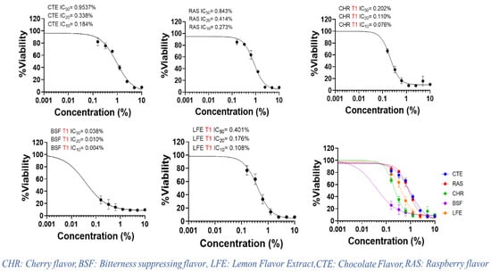 | Flavors | IC50 (mg/mL) | IC20 (mg/mL) | IC10 (mg/mL) |
