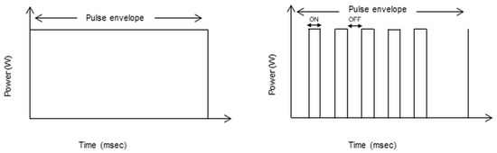 The schematic figure represents the models of laser energy delivery by conventional laser treatment (left diagram) and the micropulse mode/subthreshold laser treatment (STLT). In the conventional continuous laser treatment, the energy is delivered in a single pulse, leading to a greater temperature rise in the surrounding retinal layers with subsequent retinal photocoagulation. In the STLT, the laser is delivered in microsecond pulses (right diagram). The “on” time is the duration of each micropulse, and the “off” time is the interval between the successive micropulses. The “off” time allows for heat dissipation with the selective activation of retinal pigment epithelium (RPE).