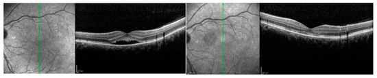 In particular, practical experience has indicated that, when a short pulse duration is released on the retina, just the RPE is affected, with no inner retinal damage [9]. STLT has been indicated as effective in the management of both acute and chronic CSC by several authors, showing variable rates of subretinal fluid resolution (on average, two-thirds of treated cases) (Figure 3) associated with visual acuity, retinal sensitivity and contrast sensitivity improvements [10,11,12,13,14,15,16,17].