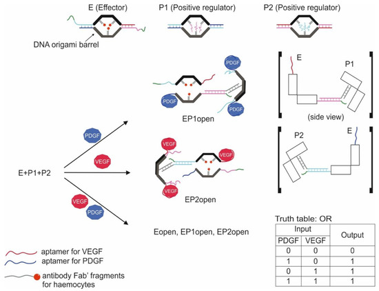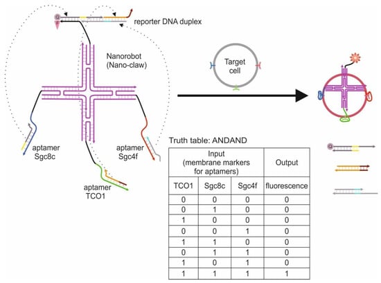 It is worth noting the possibility of organizing logic gates with multi-inputs, which, in addition to targets, also use DNA as input data [57,66,69].