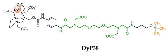 - Gambino, G.; Gambino, T.; Angelovski, G. Combination of bioresponsive chelates and perfluorinated lipid nanoparticles enables in vivo MRI probe quantification. Chem. Commun. 2020, 56, 9433–9436. [Google Scholar] [CrossRef] [PubMed]