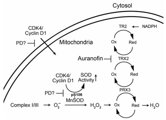 Proposed interaction of CDK4/cyclin D1 and mitochondrial antioxidant proteins.