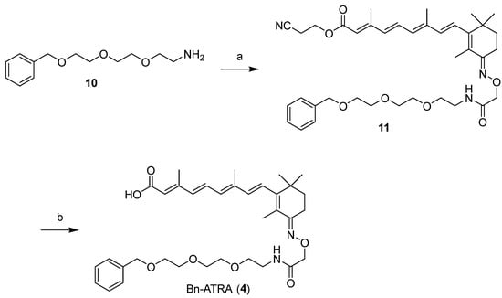 (2E,4E,6E,8E)-3,7-dimethyl-9-((E)-2,6,6-trimethyl-3-(((12-oxo-1-phenyl-2,5,8-trioxa-11-azatridecan-13-yl)oxy)imino)cyclohex-1-en-1-yl)nona-2,4,6,8-tetraenoic acid) (Bn-ATRA, 4)