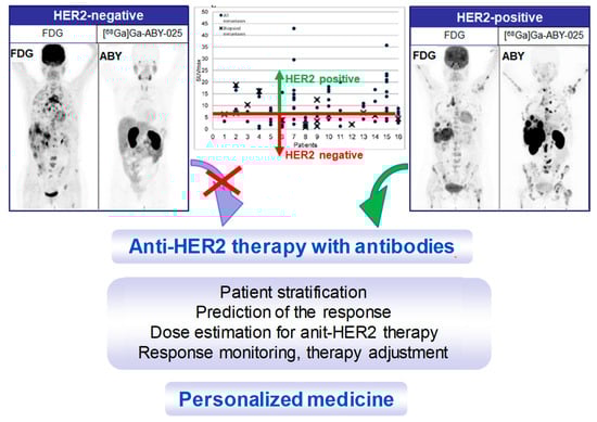 - Sörensen, J.; Velikyan, I.; Sandberg, D.; Wennborg, A.; Feldwisch, J.; Tolmachev, V.; Orlova, A.; Sandström, M.; Lubberink, M.; Olofsson, H.; et al. Measuring her2-Receptor expression in metastatic breast cancer using [68ga]aby-025 affibody pet/ct. Theranostics 2016, 6, 262–271. [Google Scholar] [CrossRef] [PubMed]