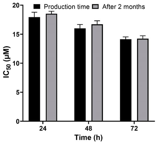 In addition, the half-maximal inhibitory concentration (IC50) of the formulations was calculated using GraphPad PRISM software version 8.00 (GraphPad Software, Inc., San Diego, CA, USA)). All experiments were performed in triplicate.