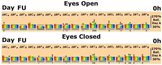 | Absolute Values for “Eyes Open” at 0 h—First Day (Acute) | ||||||||||||
