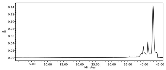 For the extracts that were obtained by Soxhlet, each selected solvent was heated to its boiling point, and the reflux was maintained for eight hours. For the extracts that were obtained by ultrasound, an ultrasound bath (35 kHz/80 W) (Sonorex RK100h, Bandelin, Germany) was used. The extraction time was 60 min at room temperature. At the end of all tests, the solvents were removed while using a rotary vacuum evaporator R-300 (Buchi, Flawil, Switzerland).