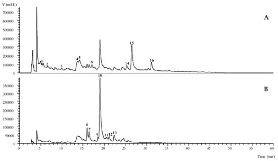 - Bessada, S.M.F.; Barreira, J.C.M.; Barros, L.; Ferreira, I.C.F.R.; Oliveira, M.B.P.P. Phenolic profile and antioxidant activity of Coleostephus myconis (L.) Rchb.f.: An underexploited and highly disseminated species. Ind. Crop Prod. 2016, 89, 45–51. [Google Scholar] [CrossRef]