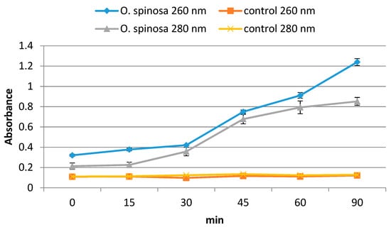 2.2. Antifungal Activity of O. spinosa Methanolic Extract