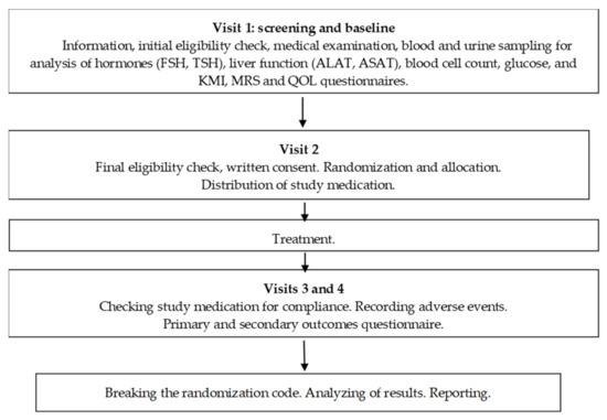 - NIH US National Liblary of Medicine. ClinicalTrials.gov. Effect of Menopause Relief EP-40 in Women with Menopausal Symptoms. Available online: https://clinicaltrials.gov/ct2/show/study/NCT03461380?term=NCT03461380&cond=%22Menopause%22&rank=1 (accessed on 15 April 2020).