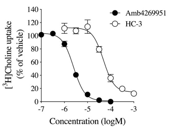2.1. Effect of Amb4269951 and Hemicholinium-3 (HC-3) on [3H]Choline Uptake