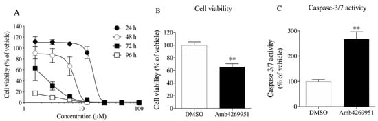 2.2. Effects of Amb4269951 on Cell Viability and Caspase-3/7 Activity