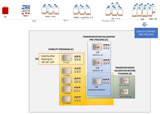 The purpose of this paper was to summarize the validation study results obtained on (1) cryopreservation and the thawing process of ATMP CIK cells (2) the transportation of the cells to identify the correct acceptance criteria to be applied, so as to evaluate the stability of the drug formulation and give useful information to clinicians for their subsequent administration to the patient.