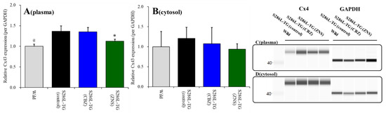 2.1. Effects of Subchronic Administrations of Therapeutic-Relevant Doses of CBZ and ZNS on Cx43 Expression in the Thalamic Cytosol and Plasma Membrane Fractions of S286L-TG