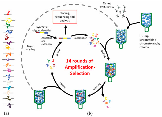 - Ellington, A.D.; Szostak, J.W. In vitro selection of RNA molecules that bind specific ligands. Nature 1990, 346, 818–822. [Google Scholar] [CrossRef]