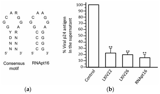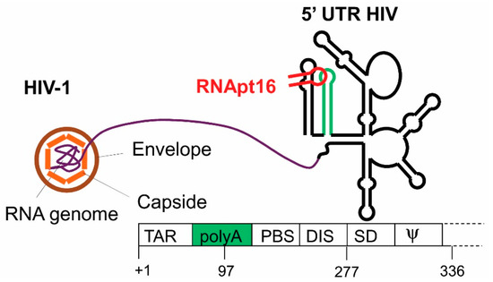 - Sánchez-Luque, F.J.; Stich, M.; Manrubia, S.; Briones, C.; Berzal-Herranz, A. Efficient HIV-1 inhibition by a 16 nt-long RNA aptamer designed by combining in vitro selection and in silico optimisation strategies. Sci. Rep. 2014, 4, 6242. [Google Scholar] [CrossRef] [PubMed]