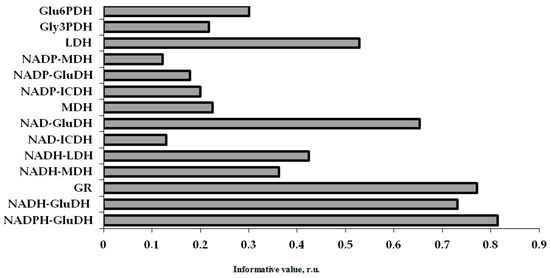 Bioluminescent method was used to determine the levels of activity of NAD- and NADP-dependent dehydrogenases in platelets [43]. The activity of the following enzymes was determined: glucose-6-phosphate dehydrogenase (Glu6FDH), glycerol-3-phosphate dehydrogenase (Gly3PDH), NADP-dependent malate dehydrogenase decarboxylated (NADP–MDH), NAD-dependent reaction (LDH) and NADH-dependent reaction of lactate dehydrogenase (NADH–LDH), malate dehydrogenase, NAD-dependent reaction (MDH) and NADH-dependent reaction of malate dehydrogenase (NADH–MDH), NADP-dependent glutamate dehydrogenase (NADP–GluDH) and NADPH-dependent glutamate dehydrogenase (NADPH–GluDH), NAD-dependent glutamate dehydrogenase (NAD–GluDH) and NADH-dependent reaction of glutamate dehydrogenase (NADH–GluDH), NAD-dependent isocitrate dehydrogenase (NAD–ICDH) and NADP-dependent isocitrate dehydrogenase (NADP–ICDH) and glutathione reductase (GR).