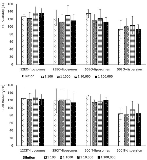 2.2. Biocompatibility of Vesicles and Protective Activity against Oxidative Stress