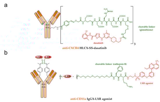 - Casi, G.; Neri, D. Antibody-Drug Conjugates and Small Molecule-Drug Conjugates: Opportunities and Challenges for the Development of Selective Anticancer Cytotoxic Agents. J. Med. Chem. 2015, 58, 8751–8761. [Google Scholar] [CrossRef]