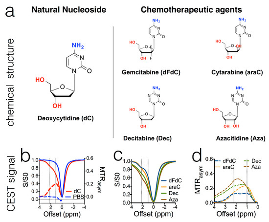 - Han, Z.; Li, Y.; Zhang, J.; Liu, J.; Chen, C.; van Zijl, P.C.; Liu, G. Molecular Imaging of Deoxycytidine Kinase Activity Using Deoxycytidine-Enhanced CEST MRI. Cancer Res. 2019, 79, 2775–2783. [Google Scholar] [CrossRef]
