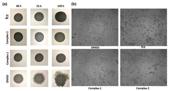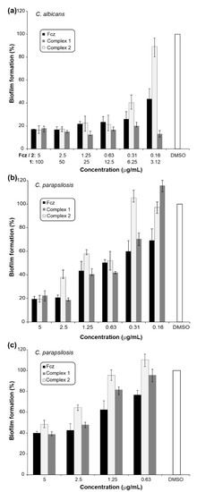 - da Silva Dantas, F.G.; de Almeida-Apolonio, A.A.; de Araújo, R.P.; Favarin, L.R.V.; de Castilho, P.F.; de Oliveira Galvão, F.; Svidzinski, T.I.E.; Casagrande, G.A.; de Oliveira, K.M.P. A promising copper(II) complex as antifungal and antibiofilm drug against yeast infection. Molecules 2018, 23, 1856. [Google Scholar] [CrossRef] [PubMed]