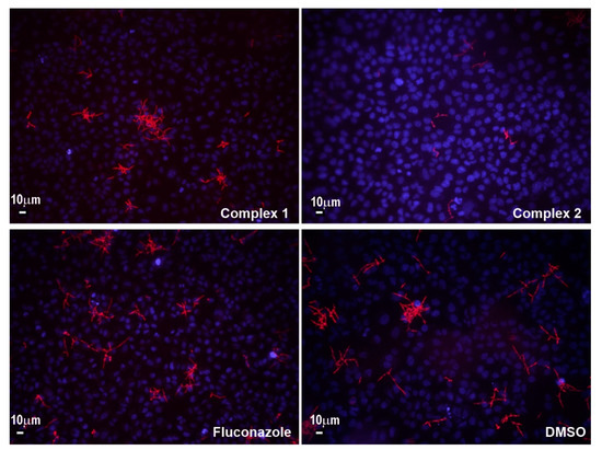3.4. Anti-Candida Properties of Fluconazole and Complexes 1 and 2