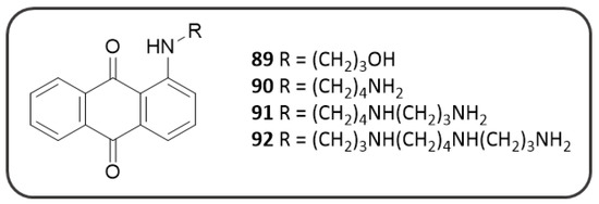 In the field of drug discovery, the AQ nucleus is an important scaffold associated with a wide range of pharmacological properties including anti-inflammatory, anti-cancer, diuretic, laxative, antidepressant, antioxidant and anti-parasitic activities (Figure 11) [157].