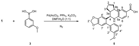 3.8.3. Synthesis of (3aS, 4R, 9bR)-4-(6-(3-Methoxyphenyl)benzo[d][1,3]dioxol-5-yl)-3a,4,5,9b-tetrahydro-3H-cyclopenta[c]quinoline-8-carboxylic acid, 5