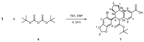 3.8.4. Synthesis of (3aS, 4R, 9bR)-4-(6-Bromobenzo[d][1,3]dioxol-5-yl)-5-(tert-butoxycarbonyl)-3a,4,5,9b-tetrahydro-3H-cyclopenta[c]quinoline-8-carboxylic acid, 7