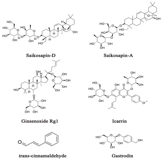 - Li, L.; Yu, A.L.; Wang, Z.L.; Chen, K.; Zheng, W.; Zhou, J.J.; Xie, Q.; Yan, H.B.; Ren, P.; Huang, X. Chaihu-Shugan-San and absorbed meranzin hydrate induce anti-atherosclerosis and behavioral improvements in high-fat diet ApoE-/- mice via anti-inflammatory and BDNF-TrkB pathway. Biomed. Pharmacother. 2019, 115, 108893. [Google Scholar] [CrossRef]