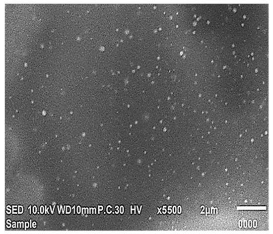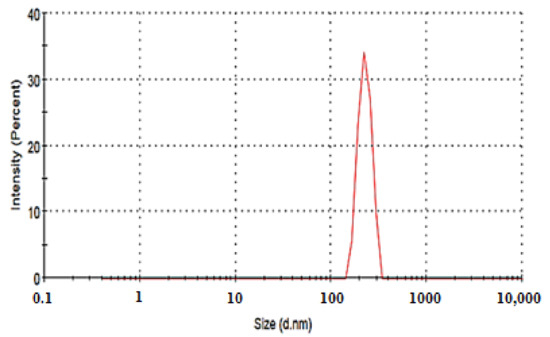 The size distribution of the EGCG-loaded nanospanlastics was described in terms of PDI. As the PDI values approach zero, the homogeneity of the colloidal dispersion increases [19]. The prepared nanospanlastic dispersion demonstrated PDI values that ranged from 0.115 to 0.418, exploring good homogeneity of the EGCG-loaded nanospanlastic dispersions.