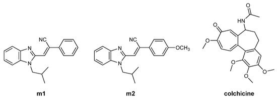 Encouraged by our findings and the fact that some of the tested compounds showed strong and selective antiproliferative activity, we further optimized the presented structure by designing and synthesizing novel N-substituted benzimidazole acrylonitriles. Here, we present the synthesis, biological activity, and tubulin polymerization inhibition of the most active compounds and demonstrate their binding within the colchicine site of tubulin via computational docking analysis and molecular dynamics simulations.