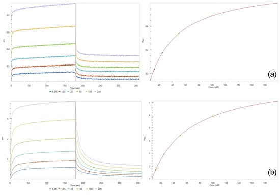 - Abdiche, Y.; Malashock, D.; Pinkerton, A.; Pons, J. Determining kinetics and affinities of protein interactions using a parallel real-time label-free biosensor, the Octet. Anal. Biochem. 2008, 377, 209–217. [Google Scholar] [CrossRef] [PubMed]