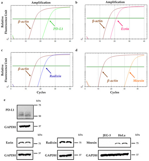 2.1. Gene and Protein Expression Profiles of PD-L1 and Each ERM in JEG-3 Cells