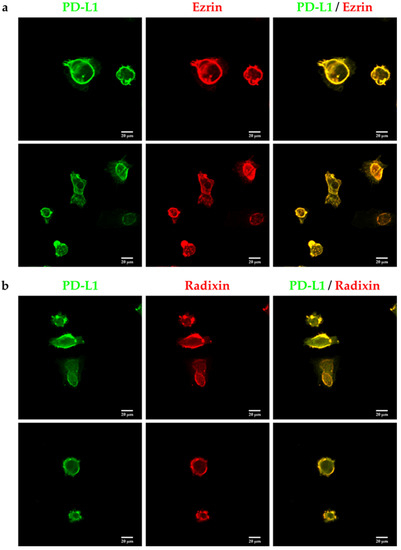 2.2. Subcellular Localization of Ezrin, Radixin, and PD-L1 in JEG-3 Cells