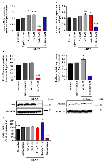 2.4. Effect of siRNAs against Ezrin and Radixin, Respectively, on Expression Levels of Target mRNAs and Proteins in JEG-3 Cells