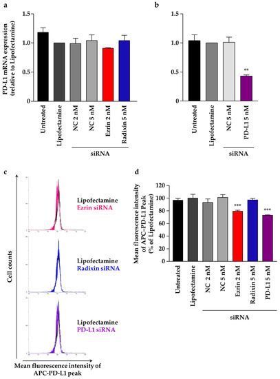 2.5. Effect of ERM Silencing on mRNA and Cell Surface Expressions of PD-L1 in JEG-3 Cells