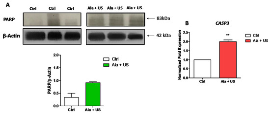 2.2. SDT Effect on PARP Cleavage and CASP3 mRNA Expression