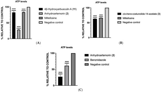 Chicago/Turabian StyleBethencourt-Estrella, Carlos J., Nathalia Nocchi, Atteneri López-Arencibia, Desirée San Nicolás-Hernández, María L. Souto, Blanca Suárez-Gómez, Ana R. Díaz-Marrero, José J. Fernández, Jacob Lorenzo-Morales, and José E. Piñero. 2021. "Antikinetoplastid Activity of Sesquiterpenes Isolated from the Zoanthid Palythoa aff. clavata" Pharmaceuticals 14, no. 11: 1095. https://doi.org/10.3390/ph14111095