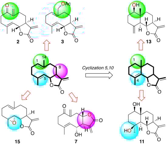 - Zhang, S.; Won, Y.-K.; Ong, C.-N.; Shen, H.-M. Anti-Cancer Potential of Sesquiterpene Lactones: Bioactivity and Molecular Mechanisms. Curr. Med. Chem. Agents 2005, 5, 239–249. [Google Scholar] [CrossRef]