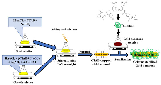 Schematic diagram illustrating the gelatin stabilization of gold nanorods.