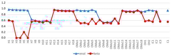 - Alagona, G.; Ghio, C. Keto-enol tautomerism in linear and cyclic β-diketones: A DFT study in vacuo and in solution. Int. J. Quantum Chem. 2008, 108, 1840–1855. [Google Scholar] [CrossRef]